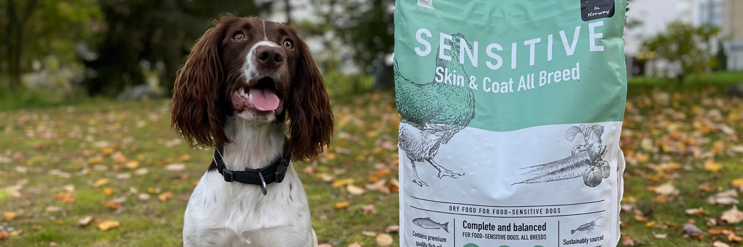 Nordic Nature Sensitive Skin & Coat All Breed er fôret for deg som har en sensitiv hund. Fôret er beregnet for hunder med mage- og tarmforstyrrelser, oppkast, diaré, gassproduksjon, mye avføring og kløe i huden. Det kan selvfølgelig også bli brukt av hunder som ikke har disse symptomene. Fôret har et høyt innhold av alle B-vitaminer, metionin og organisk sink. Dette er med på å bedre hud, pels og poter, og styrker immunforsvaret. Fôret kommer enten av kylling eller lam.